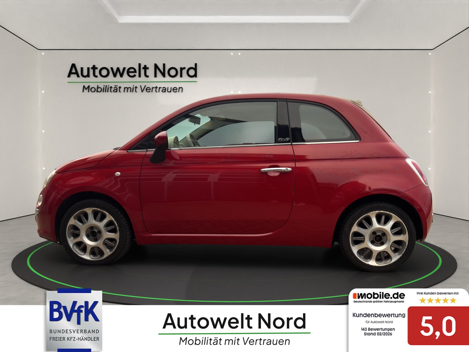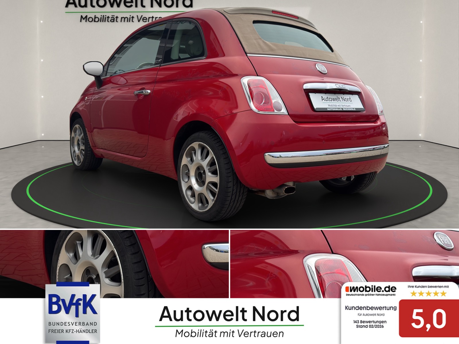 WhatsApp schreibenFiat 500C Lounge~el.CABRIOLE~KLIMA~ALU~PDC~LED~el.FH~el.Ausp.~TÜV+INSP. NEU